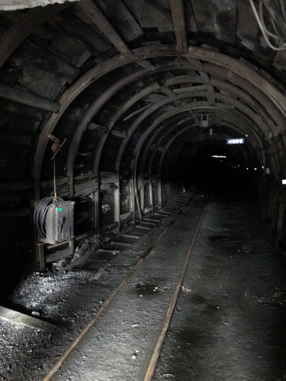 장성광업소 코스가 아니라 철암역두선탄 코스로 개발된 이유도 여전히 석탄 채취가 이루어고 있어 광업소 탐방은 위험하기 때문이다. 물론 선탄장도 운영되고 있지만, 일을 쉬는 주말에만 시에 속한 가이드 분들과 함께 선탄장 탐방이 가능하다. 바닥이 온통 새까맣기 때문에 제공하는 비닐장화를 신고 탐방하게 되는데 작은 사이즈가 부족해 다소 불편하지만, 그다지 많이 걷지는 않으므로 거닐만하다. 위의 사진이 석탄 광구로 가는 길이다. 운반차가 다니는 길이 보이는데 200미터 안쪽에는 광부의 휴게소가 있다고 한다. 아쉽게도 안전상의 이유로 광구진입은 허용되지 않는다. 철암역 주변 동네분께서 ;휴게소까지는 안전하니 열어주시오'라고 민원을 올려달라고 한다. 아무래도 선탄장보다는 광구가 관광코스로 인기가 많을 거라 예상하기 때문이다.