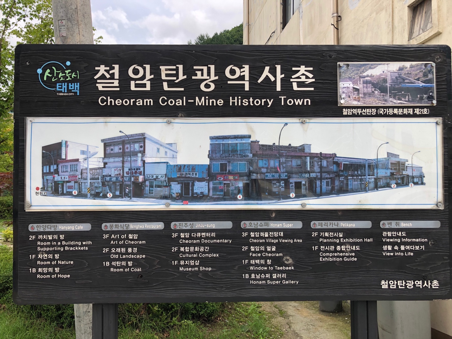 아직 캐낼 것은 좀 남았지만, 인도네시아에서 수입하는 단가가 절반도 되지 않아 수익성이 낮아, 철암역의 장성광업소도 이제 10년 정도면 폐광할 가능성이 높다고 한다. 철암역앞 마을도 이에 대응하여 부서진 곳은 보수하고 건물안은 신식으로 인테리어해서 미용실, 식당, 주점 등을 박물관과 전시관으로 활용하고 있다. 일본의 구라시키 못지 않은 재생 컨셉이라고 생각하는데, 마을 규모가 크지 않았던 것은 조금 아쉽다. 좁은 땅에 조금이라도 넓게 지으려 까치발로 건물을 만들었다는 것이 재밌다.