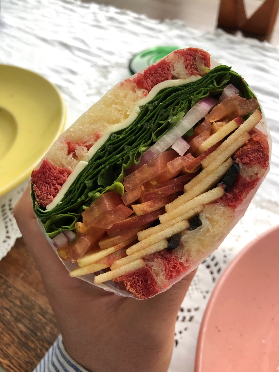 람스갤러리하우스를 방문한 사람들이 모두 찍어 올리는 정원뷰 통창. 이 곳에서 아침 식사를 즐길 수 있도록 해 주신다. 람 선생님이 직접 만드신 샌드위치로 비주얼이 대략 이렇다.