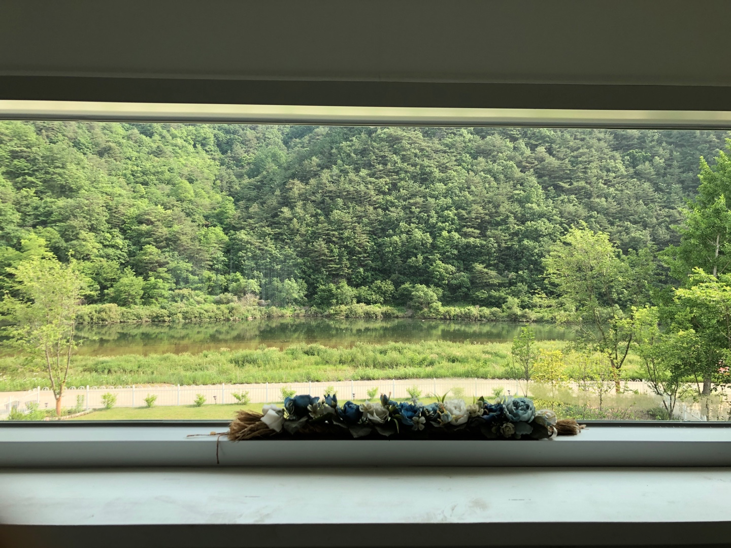 숙소에 오면서도 감탄했지만, 아침에 방에서 바라보는 풍경도 참 멋지다. 설파 선생님 말에 따르면, 보호 구역이어서 앞쪽으로 전봇대 같은 것들이 생길 일이 없다고. 앞의 하천을 따라 아침 산책을 권유하셨는데, 말이나 사진으로 표현하기는 어차피 힘들다.