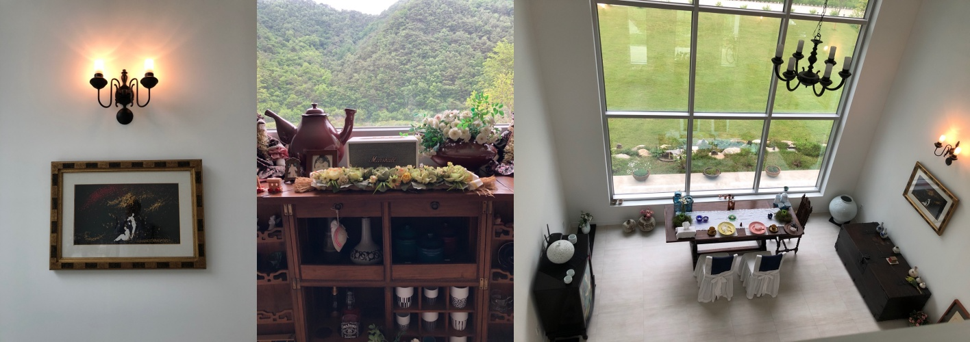 서울에서 생활하시다 십여년전부터 집에 대해 고민하시고 3년전쯤 직접 설계해서 지으셨다. 안에 들어가보면 벌이를 위해 숙소를 운영하시지 않는다는 걸 금새 알 수 있는데, 집을 짓고 나서 서울에 사는 딸의 권유로 시작하셨다고 한다. 작지 않은 건평인데도 두 분의 방, 그리고 손님 방 두개 뿐이다. 예술을 사랑하는 두 분의 삶에 최적화 되어서 설계 되었고 손님방도 넓고 쾌적하다.