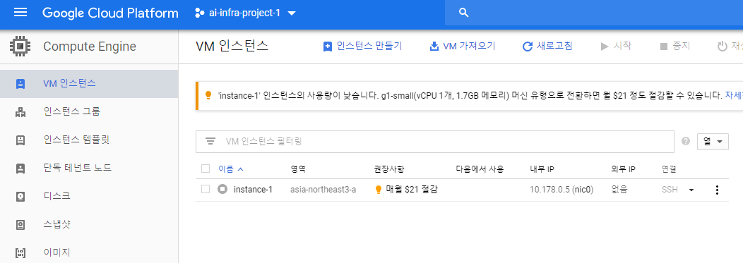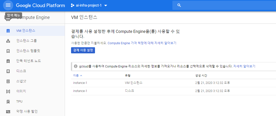 그런데, 권한을 준 Compute Engine에 접근해도 문제가 생긴다. GCP를 이용하기 위해서는 기본적으로 (무료 인스턴스라고 하더라도) 결제가 가능해야 이용할 수 있는데, 조직에서 관리되는 계정이므로 관리자가 프로젝트를 결제와 연결시켜 준 후에야 사용 가능해진다.