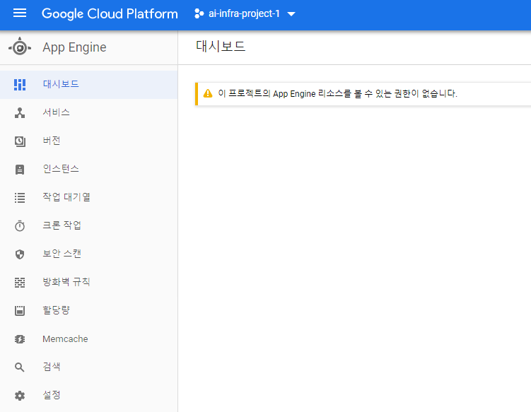 아래와 같이 다른 서비스(App Engine)에 접근하려고 하면 권한이 없다고 나온다.